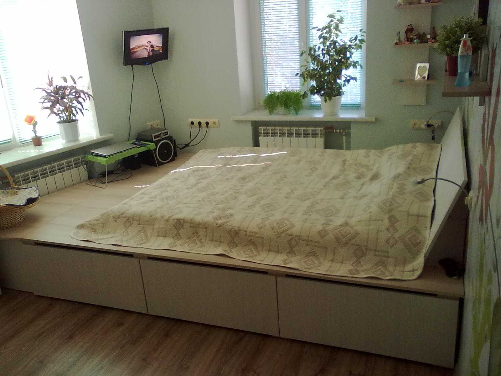 Кровать-подиум своими руками можно сделать в двух вариантах: