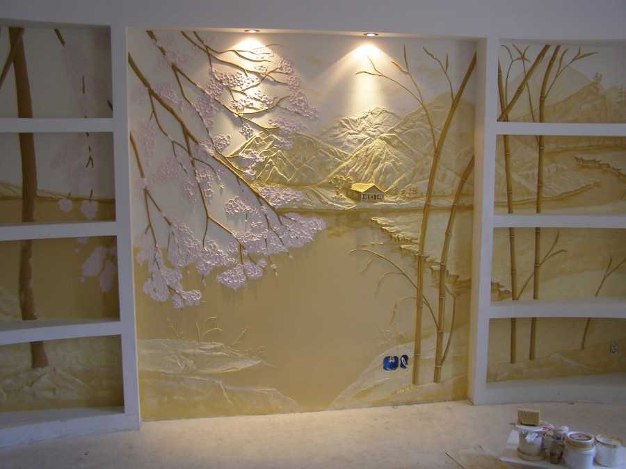 Штукатурим также, как и для любого другого покрытия, но после нужно обязательно стену прошпаклевать финишной шпаклёвкой и перетереть войлочной теркой.
