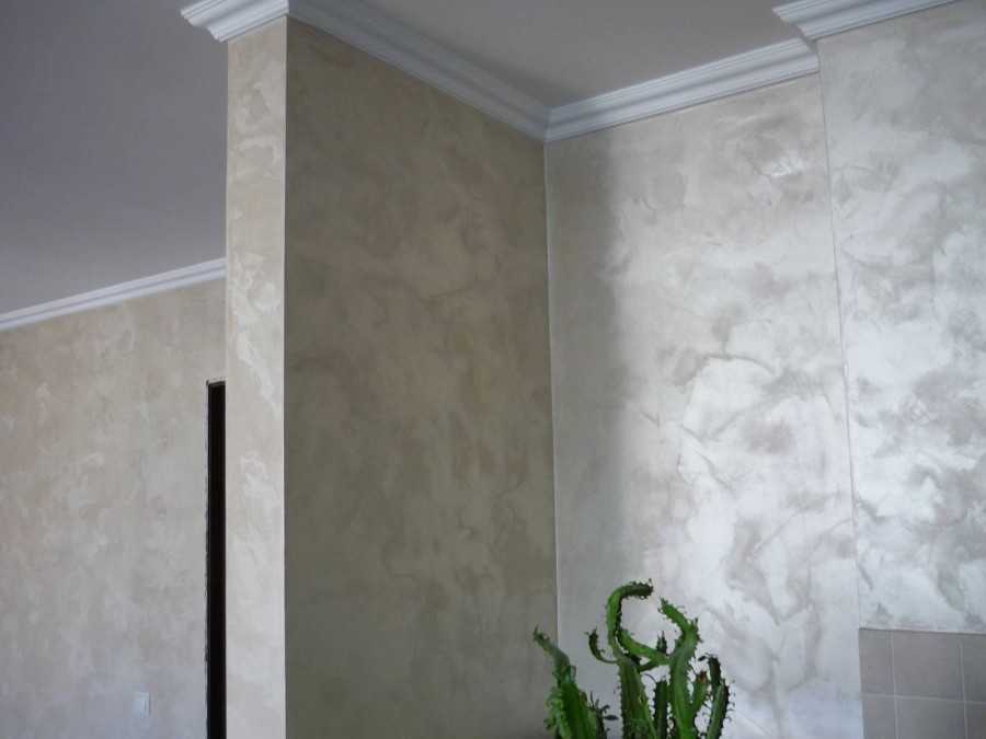 - Завершающий слой – накрывка. Он последний, самый гладкий и тонкий. Толщина – около 3 мм. Нанесение происходит посредством шпателя и кельмы. Нужно набрать небольшое количество раствора на инструмент и выполнить растягивание по стене. Когда слой схватится, его шлифуют.