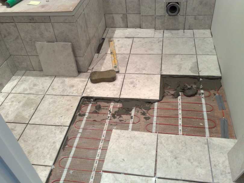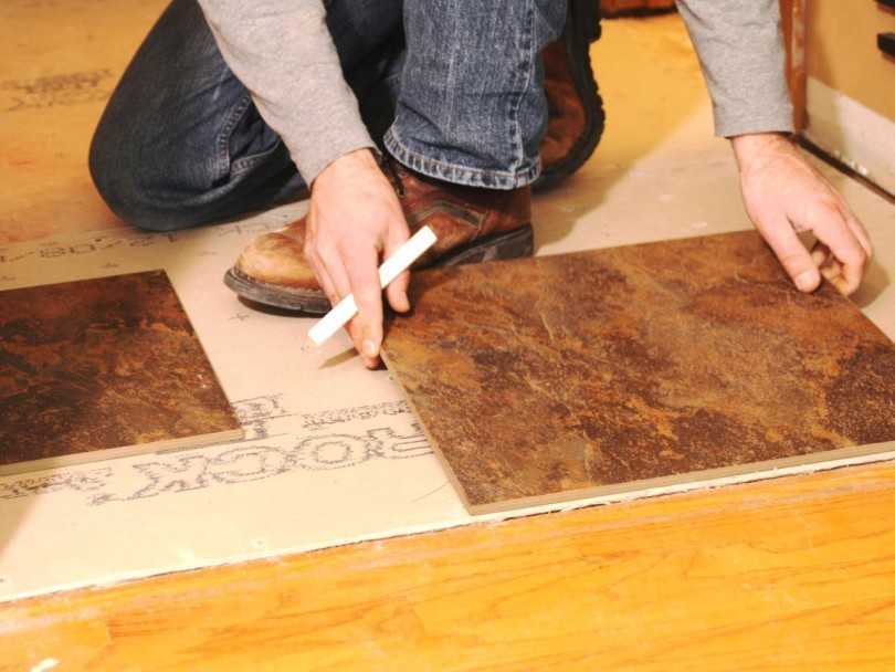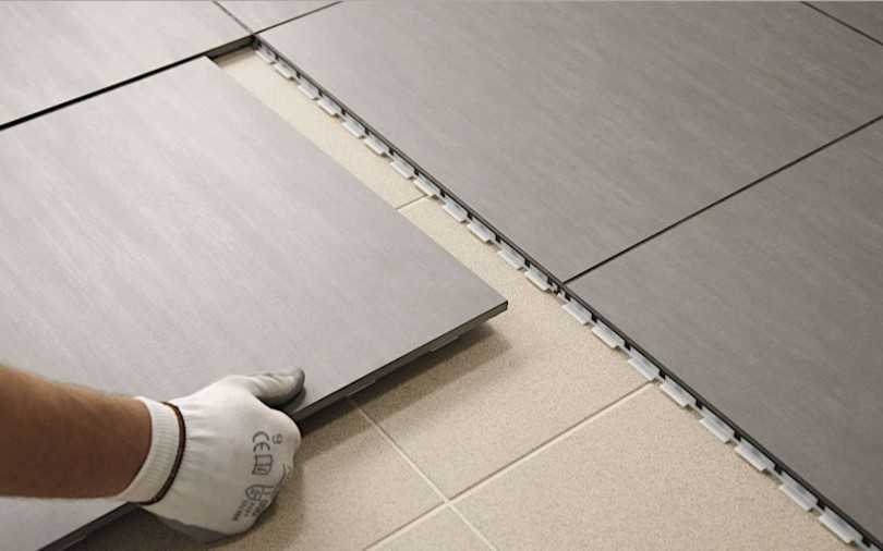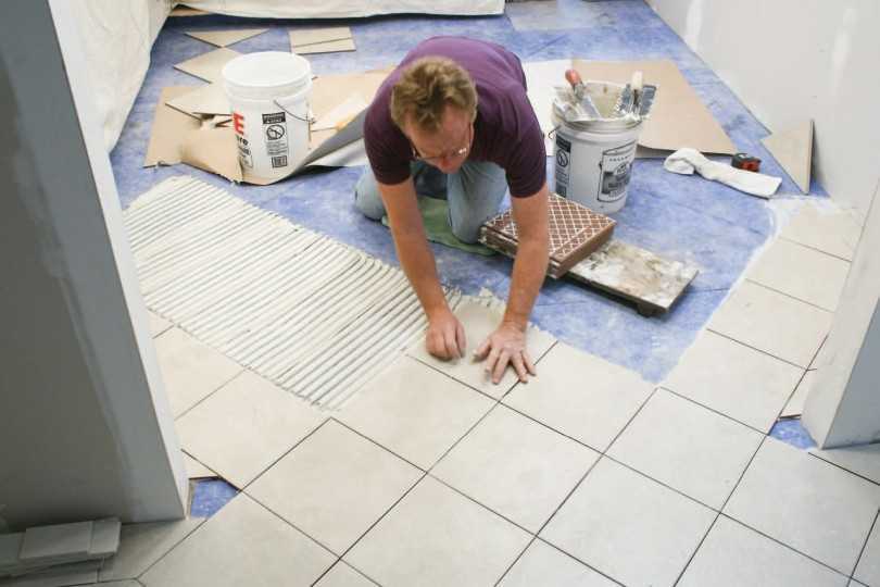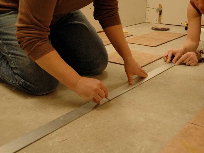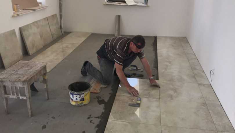 В случае с монтажом напольной плитки требуется для начала освободить поверхность пола от предыдущего покрытия до самого основания. Далее необходимо уложить стяжку и гидроизоляционный слой.