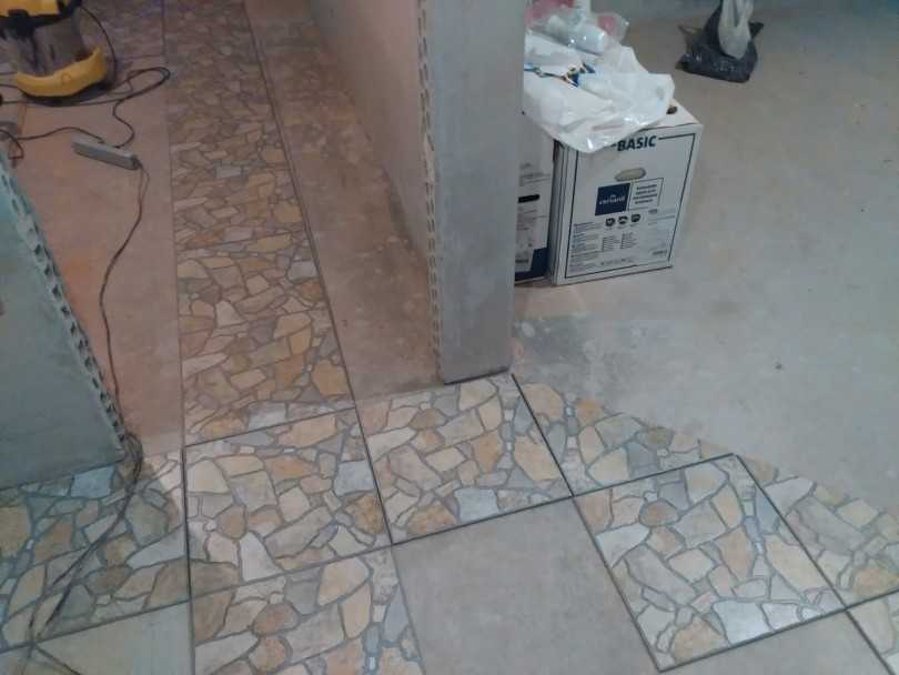 Предварительно перед укладкой можно разложить плитку в сухую, чтобы легче было понимать, как строится весь ход работы.