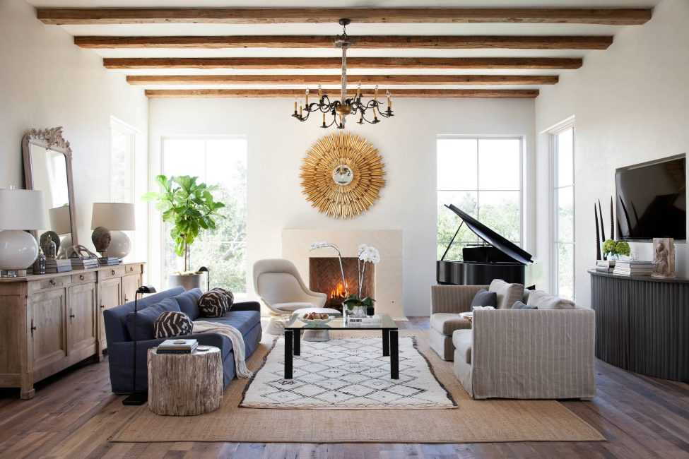 Балки на потолке гостиной в стиле провансИсточник rerooms.ru