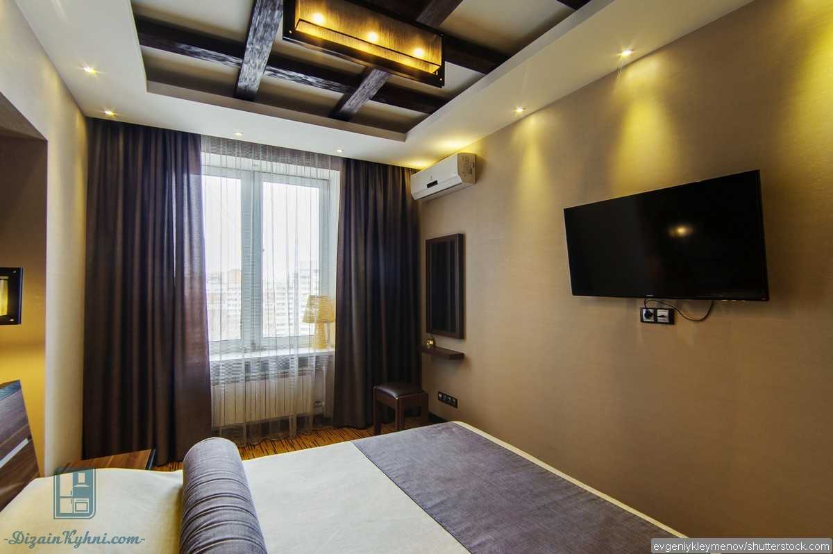 - В маленькой спальне без окон избавиться от ощущения замкнутого пространство помогут фотообои с изображением открытого окна и искусственный свет.