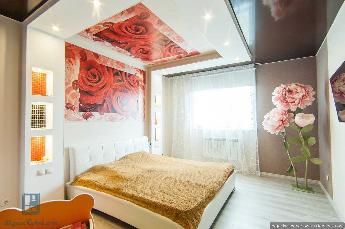Нежный дизайн можно создать в спальне с обоями из роз, лилий, орхидей и других светлых цветочных композиций.