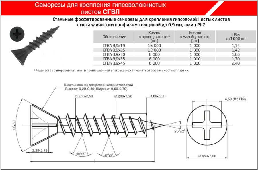 головка шурупа «утапливается» в лист примерно на 1 мм, при этом важно следить, чтобы шурупы входили в материал под прямым углом, а шаг фиксации не должен быть меньше 25 см;