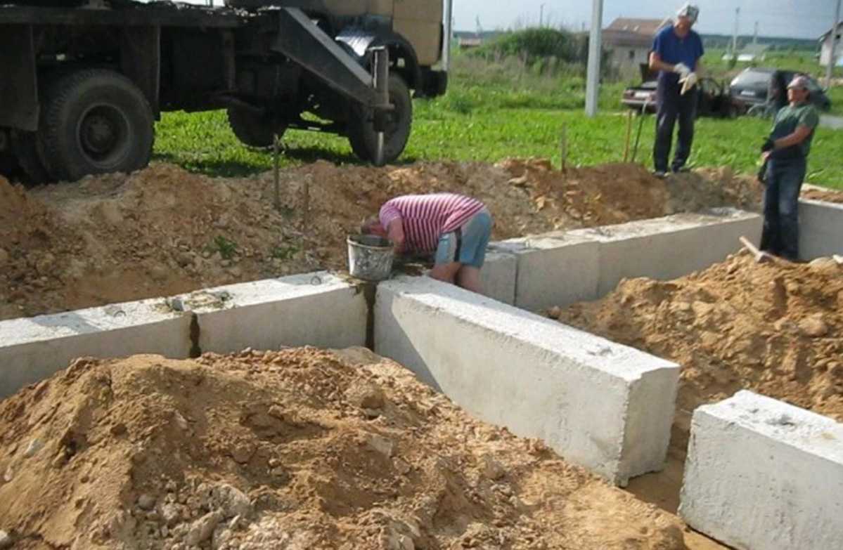 Строительство фундамента из блоков по базовой технологии показано для сухих и тугопластичных подстилающих грунтов, несущая способность которых в пересчёте на площадь опирания и массу постройки обеспечивает коэффициент надёжности порядка 1,2–1,4. В целом можно рекомендовать заложение сборного фундамента без ростверка при несущей способности грунта не менее 4,5 кг/см2.