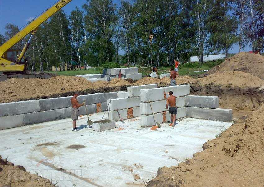 Общий порядок действий при устройстве фундамента из ФБС таков: