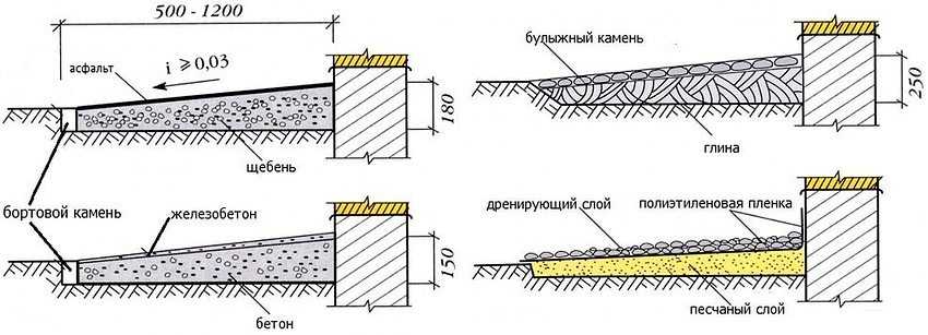 Тогда вода не сможет причинить вреда стенам и основанию дома. Оптимальная ширина -это 1 м, а возможна ширина — 60 см. На ширину еще может повлиять тип грунта.