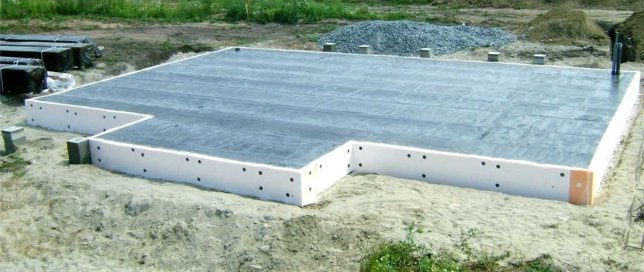Это идеальная фундаментная конструкция под каркасный дом. Это монолит под все здание с большой несущей способностью, который создает равномерную нагрузку на грунт.