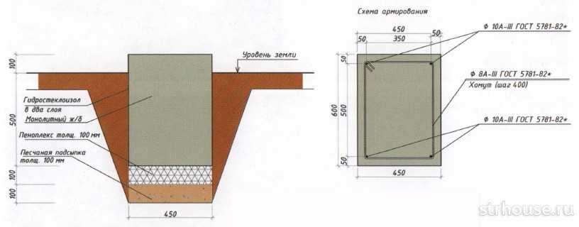 Глубина заложения несущей ленты может достигать 1,5–2 м в зависимости от уровня промерзания почвы