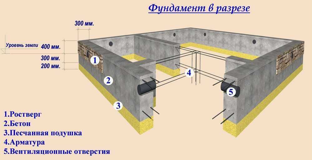 Без подошвы такая нагрузка будет чрезмерной, фундамент будет проседать. Для правильного распределения веса основания подошва должна быть шире самой ленты, обычно в два раза.