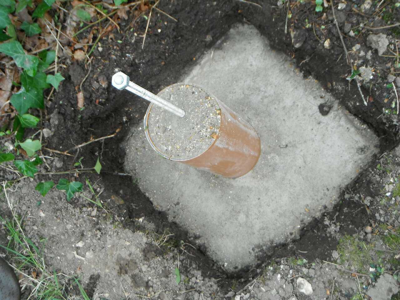 - Труба опускается в подготовленную скважину, после чего заливается бетоном.