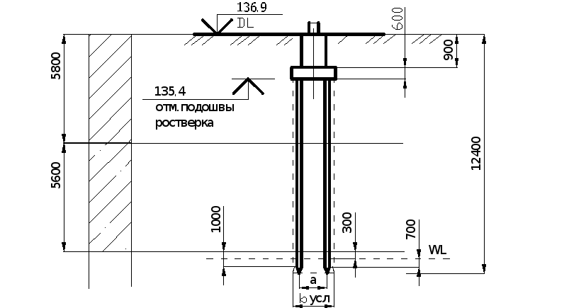 - гидрогеологических изысканий (уровень грунтовых вод — УГВ);