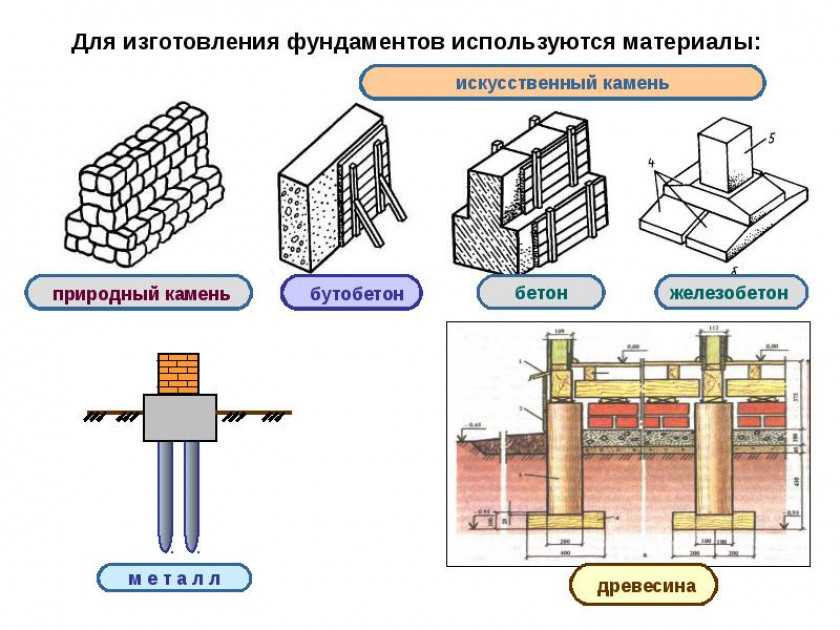 Изготавливают опоры столбчатого фундамента из различных материалов. На выбор определенного вида материала влияет,в первую очередь, вес возводимого здания.
