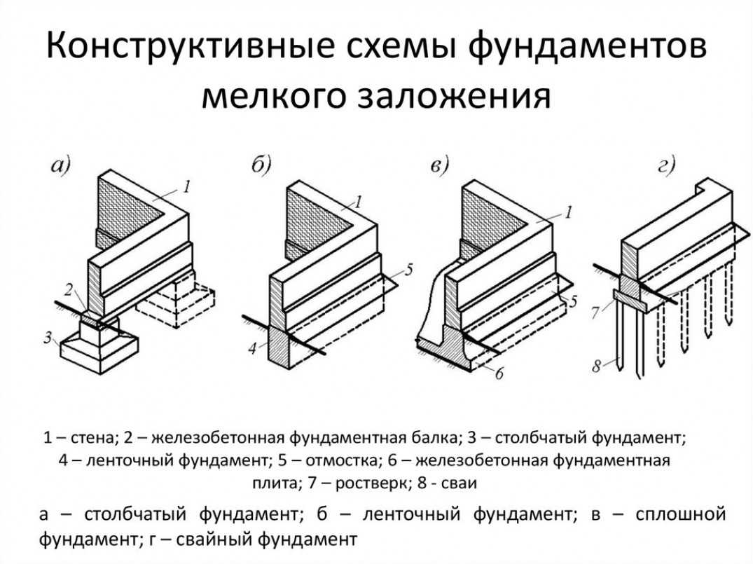 - Малозаглубленные — к ним относят основания зданий, заложенных на глубине равной 0,5—0,7 глубины промерзания согласно нормам.