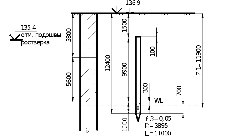 Примечание. Минимальная глубина заложения фундаментов составляет 0.5 м от уровня планировки, в несущий инженерно-геологический элемент — ИГЭ — 0.2 м. Устанавливать фундаменты желательно выше УГВ, если это возможно, на одной отметке, особенно в сейсмоопасных районах, и на один и тот же ИГЭ.