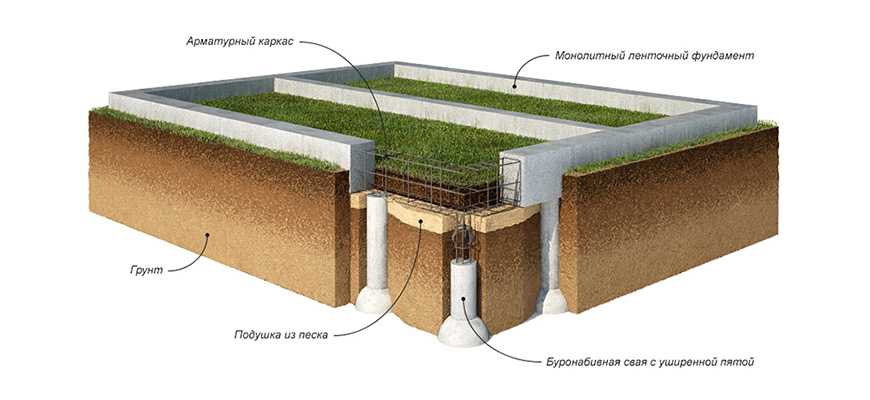 Свайно-ленточная конструкция — буронабивной фундамент.