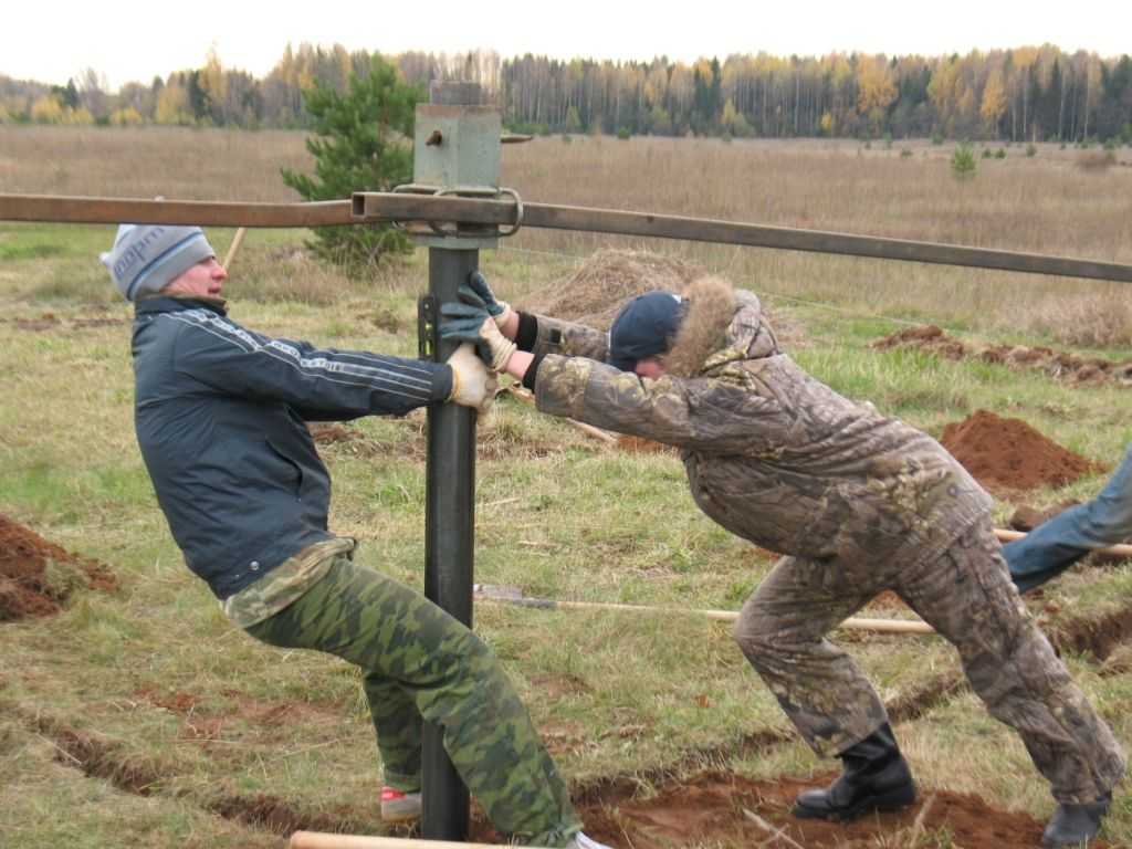 - Наличие заборов, высоких кустарников, деревьев и строений рядом с местом устройства фундамента мешает погружению свай вручную.