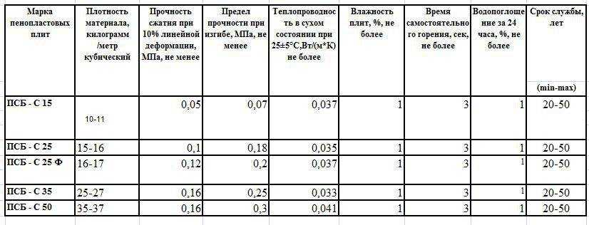 - Прочность на сжатие. Достигает 400 кПа и более для экструдированных плит. У самого прочного сорта пенопласта ПСБ-С-50 показатель составляет 160 — 250 кПа.