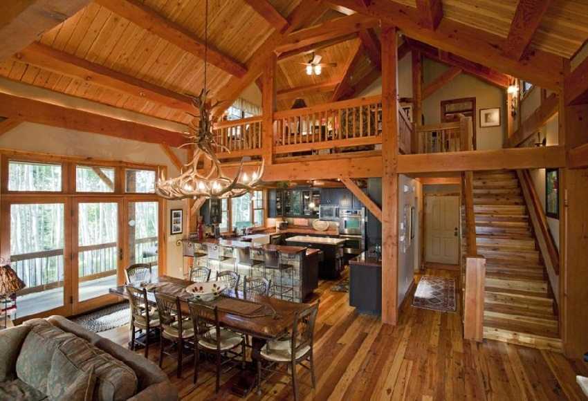 Профилированный и клееный брус: интерьер, фото домов внутри из этих материалов