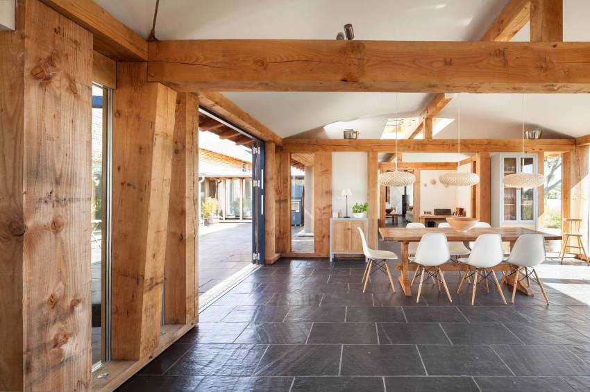 Интерьер с обилием деревянных материалов и декоративных элементов