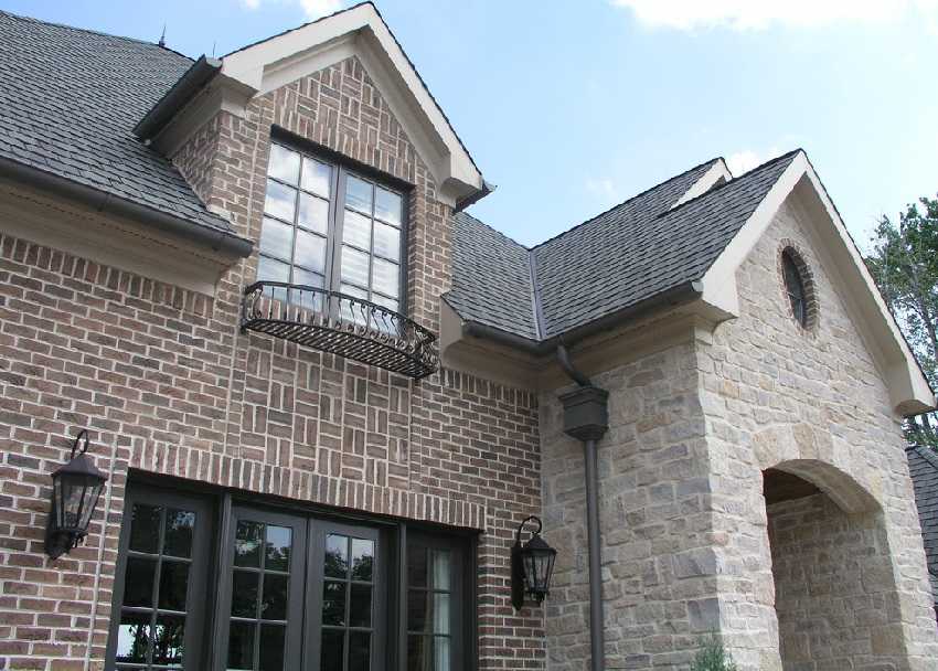 Пример удачной комбинации использования облицовочного кирпича и натурального камня для отделки фасада здания