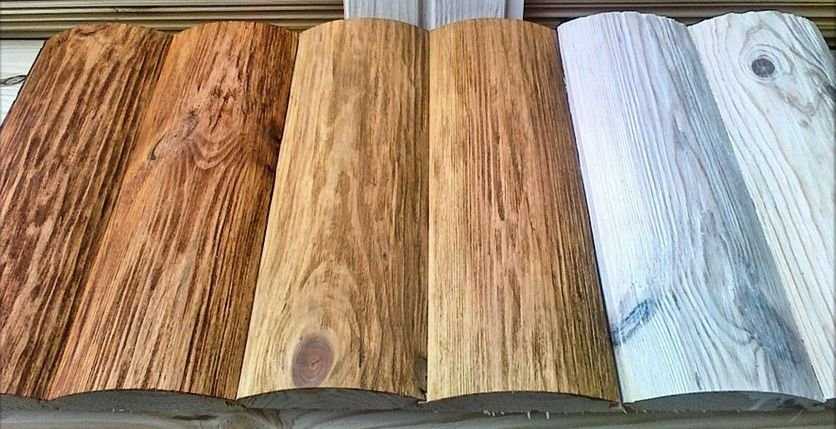 Для придания поверхности блок-хауса улучшенных свойств, требуемого цветового оттенка, используются специальные пропитки, которые содержат пигменты, масла. Акриловая, алкидная, масляная – такие основы имеют покрасочные материалы. Лессирующие краски, впитываясь в дерево, покрывают его однородным слоем, не создают подтеков. Они усиливают природную красоту узоров. Крашеный брус заметно выделяется на фоне необработанных досок.