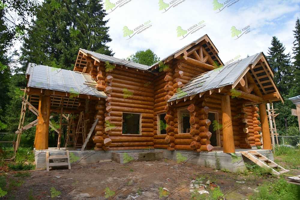 В конечном итоге Заказчик получает деревянное строение (дом, баню, беседку, гараж) с готовыми для дальнейшей обработки дверными и оконными проёмами. Собирается на берёзовые нагеля диаметром 25 мм, с прокладкой между венцами джута и с использованием компенсационных винтов (домкратов) и скользящих опор для стропильной системы.